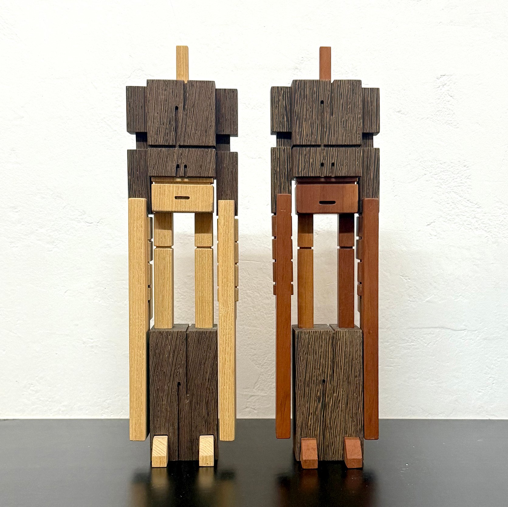 Hardwood RWG made of Cherry and Wenge and another character made of Oak and Wenge. Small hardwood sculpture master grade. 28 x 6.7 x 4.8 cm (HxWxD) 2022. Shipping in a dedicated wooden box